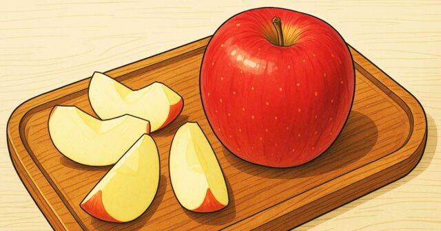 皮つきのりんごは歯ごたえが強く、しっかりと歯が揃っていないと丸かじりは難しい食べものでもあります。